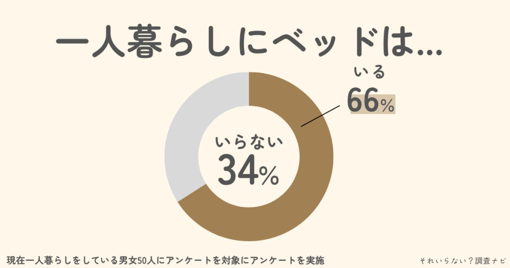 一人暮らしにベッドがいるかいらないか、当サイトはクラウドソーシングサイトで現在一人暮らしをしている男女50人にアンケートを取りました。